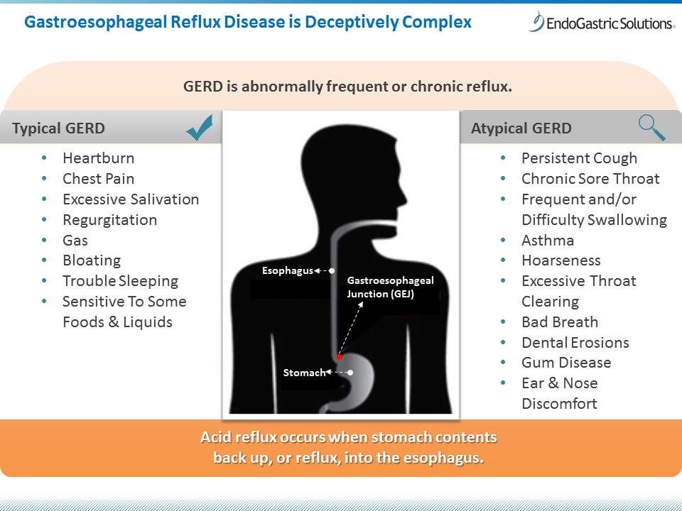 - Regurgitation: The sensation of acid or food coming back up into the throat or mouth.